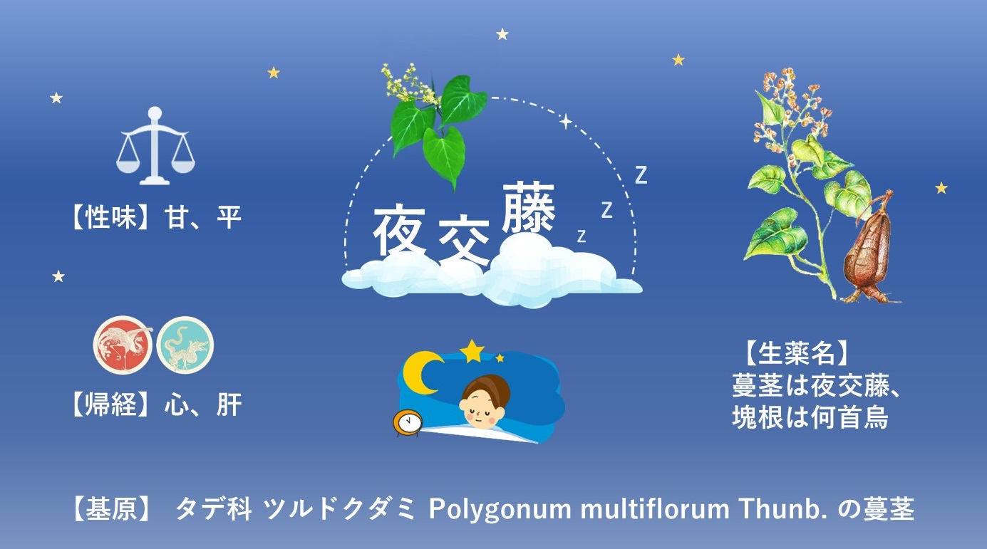 ツルドクダミの成分には夢見を穏やかにする含まれていると言われています。ツルドクダミは葉がドクダミに似ていて、夜につる同士が絡むことから夜交藤(ヤコウトウ)という名でも呼ばれています。ツルドクダミの利用者からは血虚といわれる状態を緩和し、夢見を穏やかにすると評判があります